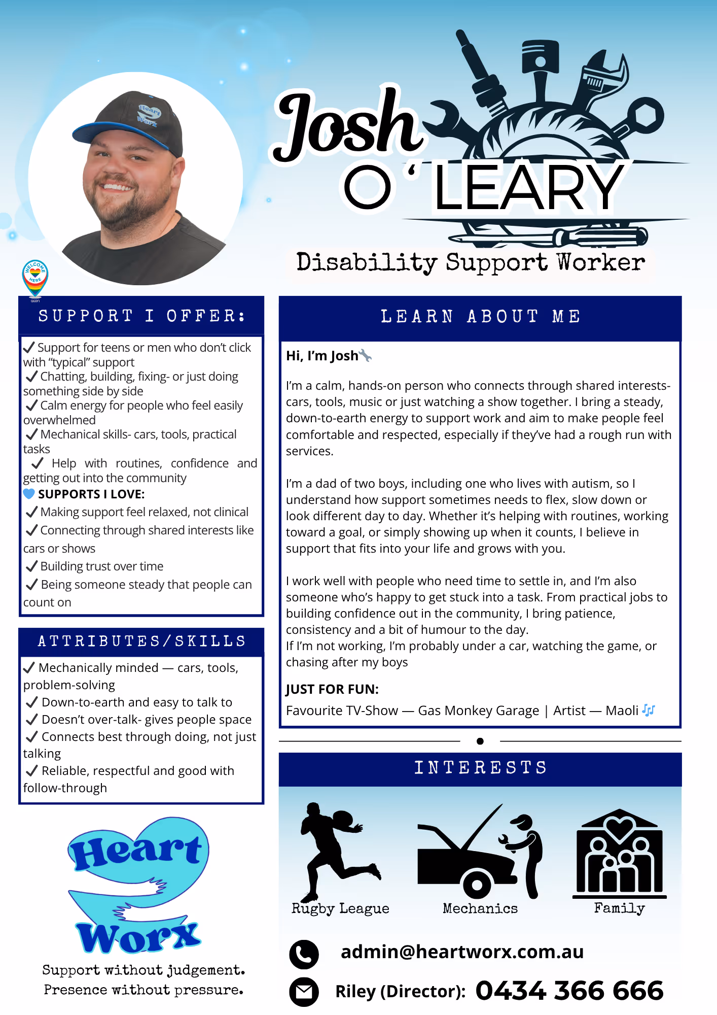 Hi, I’m Josh. I’m a family-minded, practical worker who enjoys rugby league and hands-on projects. I’m dependable, friendly, and focused on simple goals that make everyday life work better while keeping things straightforward.